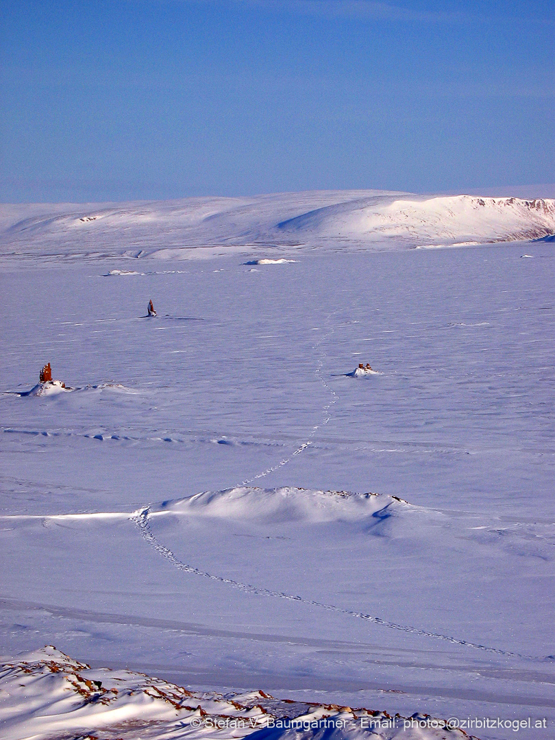 Unendliche Weiten und mittendrin eine Eisbärenspur, Nordaustlandet, Svalbard