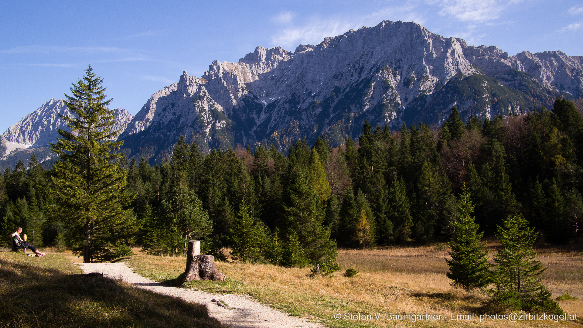 Blick zum Karwendel und zur Westlichen Karwendelspitze, Bayern, Deutschland