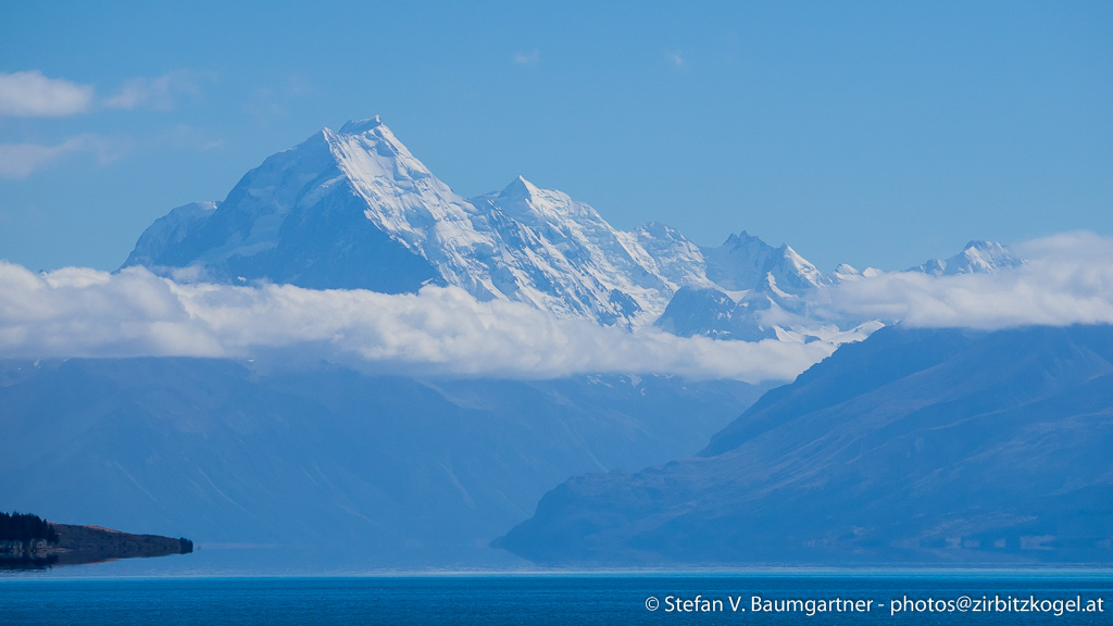 Mount Cook und Lake Pukaki, fotografiert beim Lake Pukaki Viewing Point