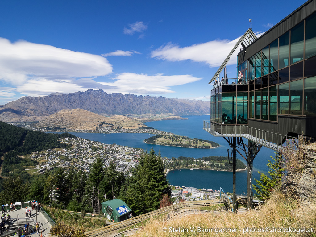 Bergstation der Skyline Gondola hoch über Queenstown und dem Lake Wakatipu