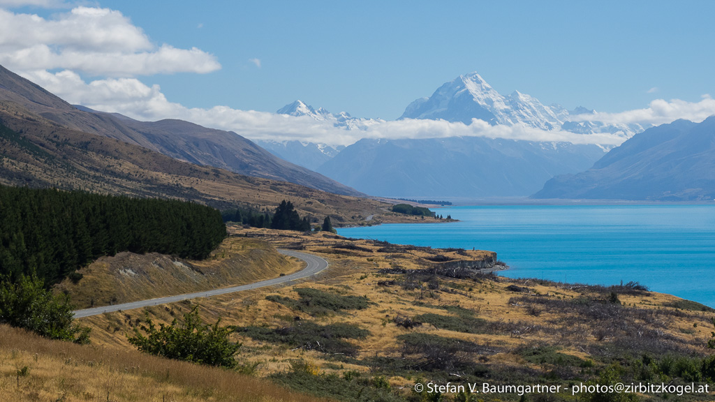Mount Cook und Lake Pukaki, fotografiert vom Peter's Lookout