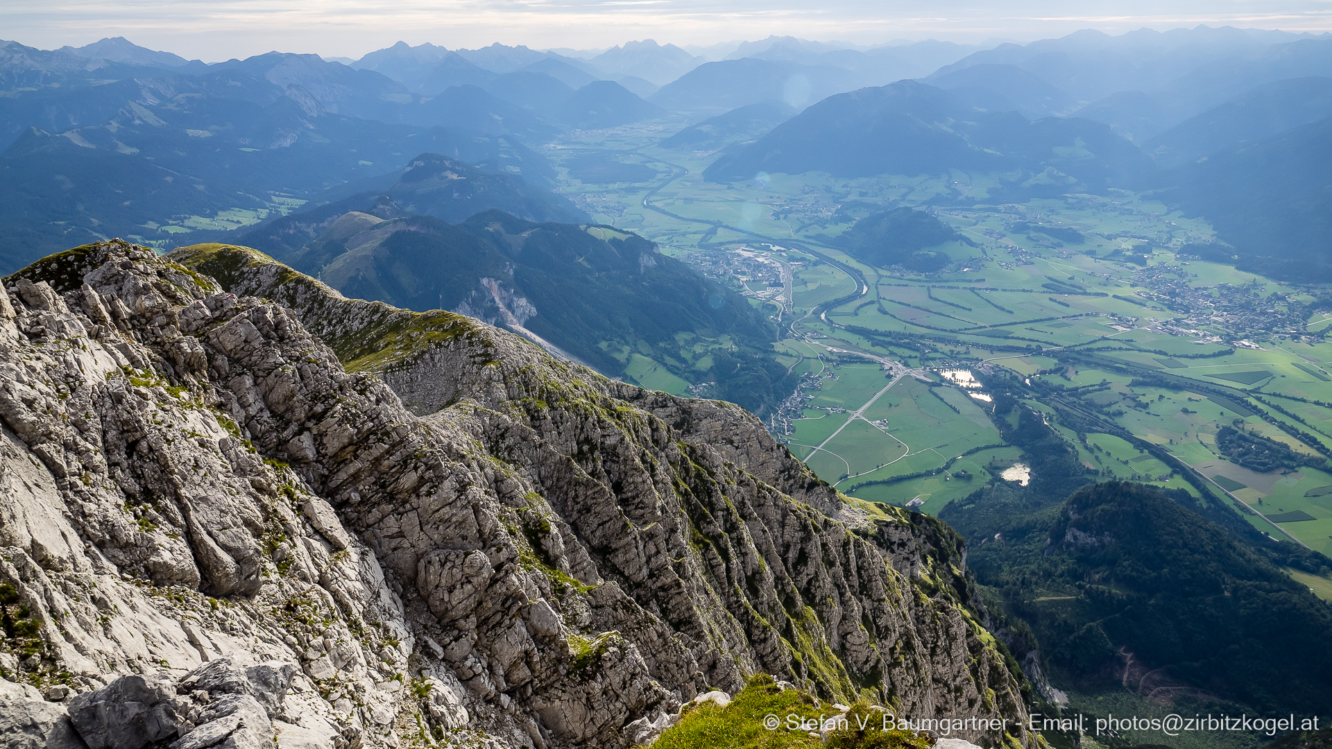 Blick ins Ennstal beim Abstieg vom 2351 m hohen Grimming