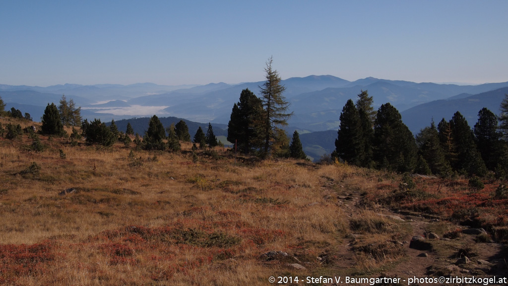 Aufstieg zum Zirbitzkogel während des Altweibersommers, Steiermark, Österreich